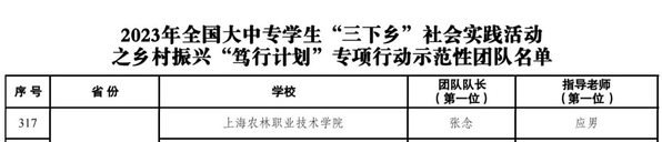 为深入学习贯彻习近平总书记关于“三农”工作的重要论述,近日,共青团中央青年发展部在全国范围内组织开展2023年全国大中专学生“三下乡”社会实践活动之乡村振兴“笃行计划”专项行动。学院智慧农业工程系“先行者”暑期社会实践团入选2023年全国示范性团队。