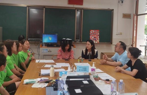 孙泽雨向大家介绍了岳阳街道暑托班的办班情况及志愿者的服务情况。胡慧春对参与暑托班志愿服务的同学给予表扬,详细了解志愿者工作情况,并对志愿者在高温下坚持工作、奉献爱心表示慰问。希望同学们能够坚持以饱满的热情和高度的责任感投入到暑托班的工作中。