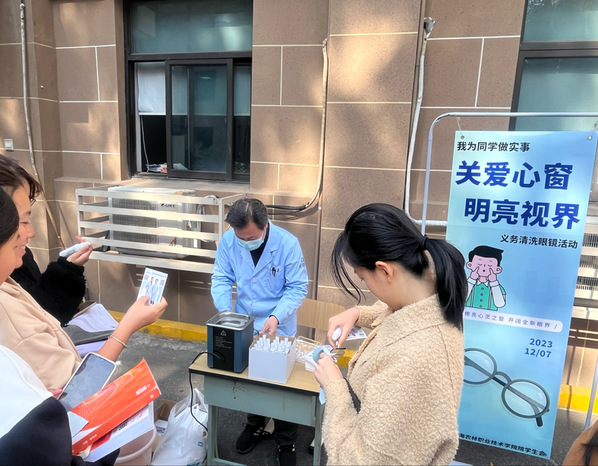 活动现场,工作人员细心提供眼镜清洗、维修服务,还向同学们宣传了爱眼护眼的知识,提醒他们要定期检查视力,合理用眼,保护好自己的眼睛。