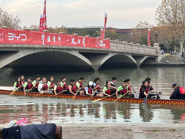 活动期间,同学们还参与了交大龙舟协会组织的划龙舟体验活动,学习了划龙舟的基础动作并上船进行体验。