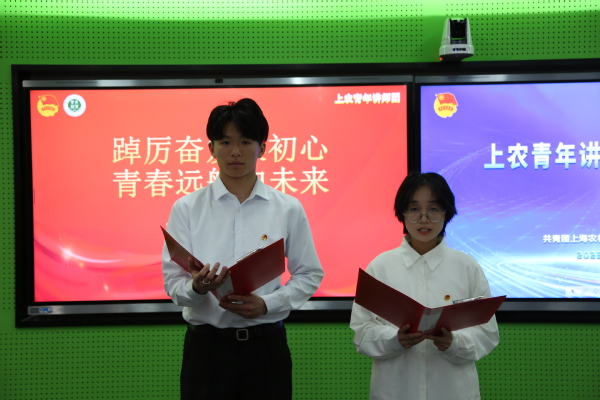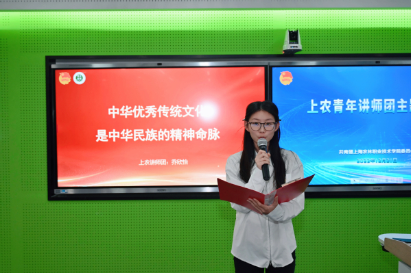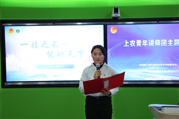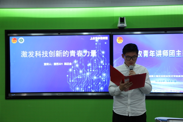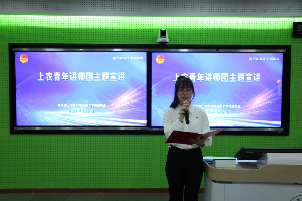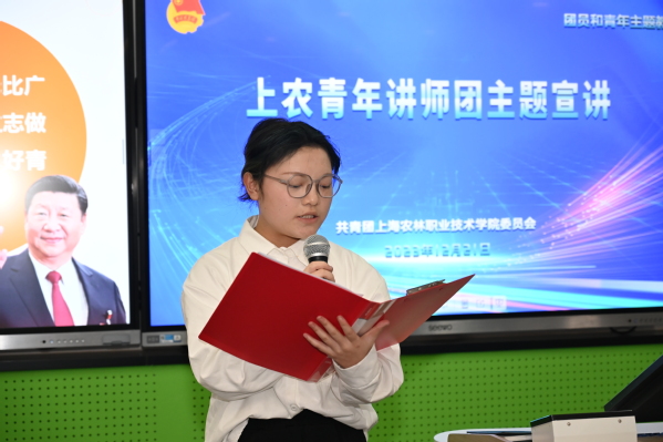 在主题宣讲环节,上农青年讲师团全体讲师们依次宣讲,讲师团配备2名教师、11名青年学生典型及团学骨干,通过理论宣讲,事迹分享,将理论与实际相结合、道理与故事相统一,把党的创新理论转化为青年身边的“小故事”,融入青年生活场景,以青年之声传递党的二十大精神,用“青言青语”让理论宣讲走“新”更走“心”。