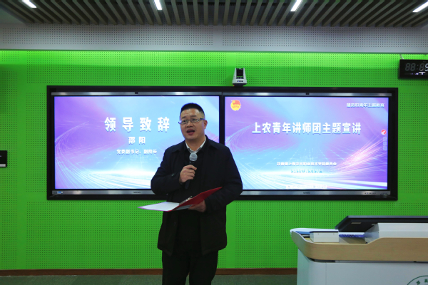 12月21日,在综合楼403智慧教室,上农青年讲师团开展主题宣讲,学院党委副书记、副院长邵阳出席,团委书记胡慧春、院团委相关负责老师、各系团总支、团支部书记代表、团员和青年代表50余人参加。