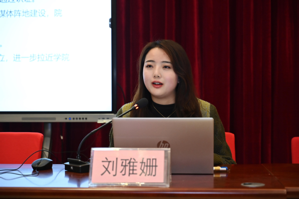 团委宣传部部长刘雅姗向培训班学员介绍上年青年新媒体矩阵建设情况,指出学院团委注重“平台建设”,进一步融合“上农青年”新媒体矩阵,形成“一群”“两微”“三视”的多媒体融合发展矩阵,不断提升网络育人工作“广度”。