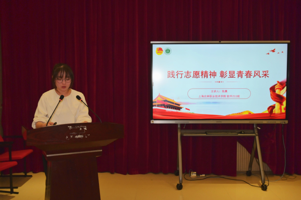 论坛共分为两个部分进行,首先由来自学院青协获得“2023年度上海市优秀志愿者”荣誉称号的软件211班陈晨同学分享志愿故事,她就自己参与进博会、G60马拉松、上海车展等等志愿活动经历做了分享,她说到荣获上海市优秀志愿者只是茫茫征程中的一个里程碑,她会继续保持服务他人,回报社会的初心,积极承担社会责任,为祖国建设添砖加瓦,传递青春正能量。之后由院青协及5个系部的志愿者负责人围绕自负责条线的志愿服务工作,就精品志愿服项目、特色工作方法、志愿服务工作心得一一进行分享。