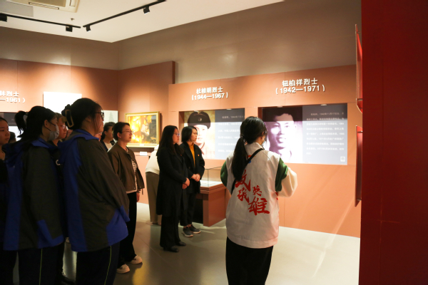 今年清明期间,学院团委选拔了30位志愿者服务松江烈士陵园纪念馆讲解、武器装备讲解、祭扫仪式礼兵等岗位,仪式后,师生一行来到园区内的革命烈士纪念馆参观,学生管理党支部书记高东菊对正在馆内服务的3名志愿者进行了亲切慰问,并在学院志愿者的引导和讲解下,观看了“追寻先烈足迹”展播短视频《永不凋谢的芳华》,参观了纪念馆,志愿者们重点介绍了松江各个时期具有代表性的22位烈士的光辉事迹,令全体同志动容。最后,师生一行在学院退役军人志愿者的带领下,来到国防教育园内,志愿者用入伍所学知识,认真的向大家做武器装备讲解。