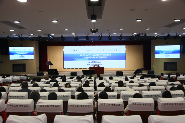 姚栋华以《新质生产力背景下的院校创新创业教育探索》为主题,表示“创新是引领发展的第一动力。新时代面临新机遇,以新产业、新技术、新业态、新模式为代表的新经济蓬勃发展,对创新创业人才提出了新的更高要求,迫切需要加快教育改革创新。”姚部长结合自身工作实际介绍了上海市学生事务中心在推动高校创新创业领域的经验和成果,同时结合案例分析,帮助教师们分析了遴选优质创业项目及价值挖掘的方法,科研成果转化成创业项目的关键点,科研技术创新点转化成项目亮点的技巧。最后,姚部长高度肯定学校近几年双创教育在制度建设、师资队伍建设、项目培育、赛事成果等方面取得的显著成效,希望学校将创新创业教育与专业教育进一步融合,加快培养应用型、复合型创新创业师资力量,助推学院整体双创教育工作水平的高质量提升。