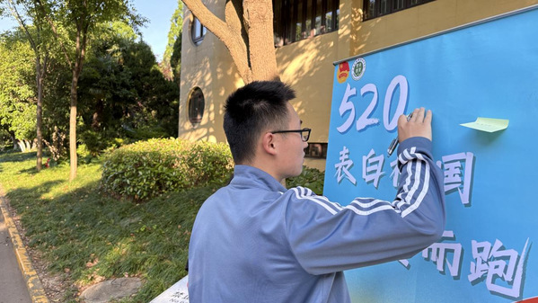 开跑前学生会工作人员提前到达现场,确保参加学生充分做好热身拉伸,以防在奔跑中受伤。活动现场,同学们使用keep,乐动力等运动app现场记录跑步距离,随后到指定地点打卡、领取表白卡后,写下深情表白祖国的话语,粘贴到表白墙上。除了前期通过活动预热报名参加的同学以外,校园跑过程中还有许多路过的同学被活动氛围所感染,也纷纷加入进来。大家用独特的方式,在这个大声表达爱的日子,用行动向党和祖国表白。