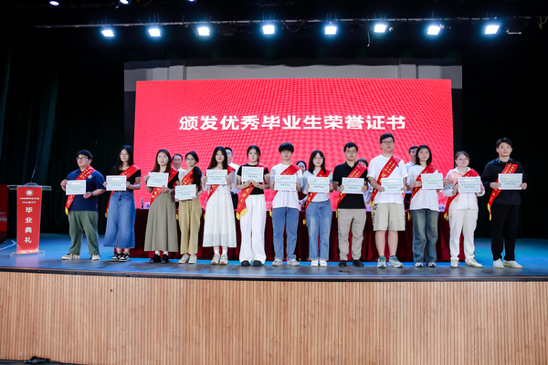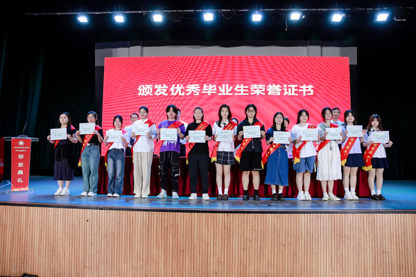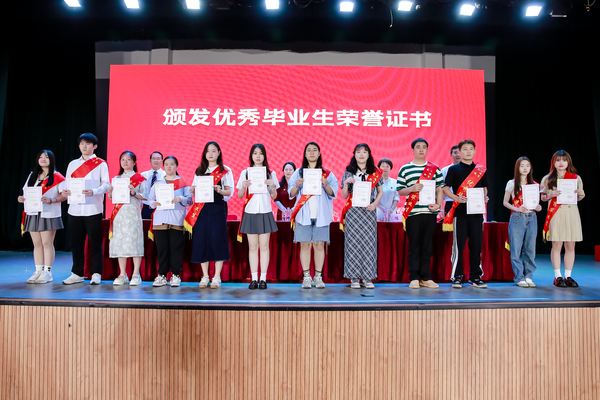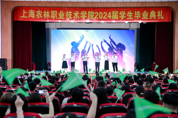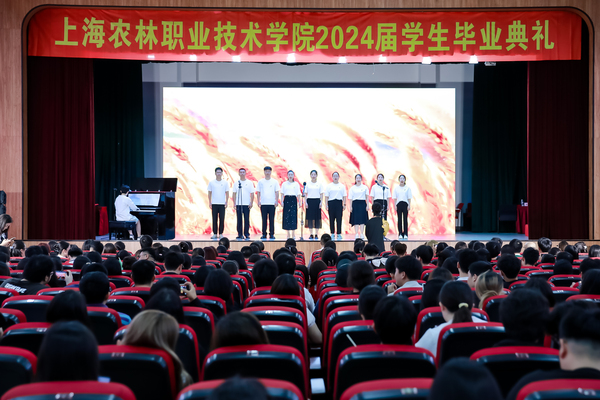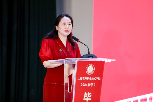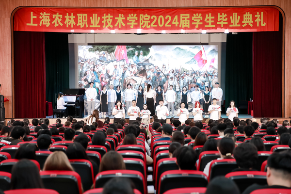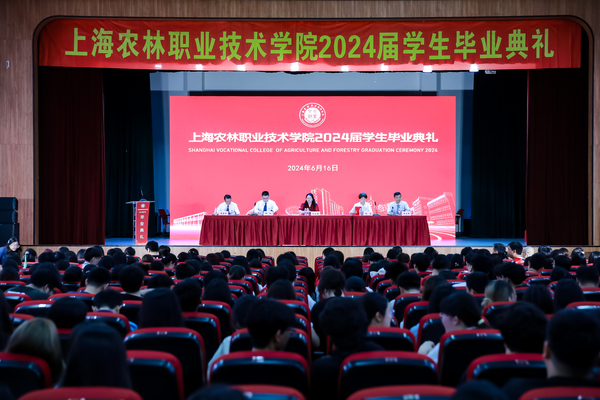 党委副书记、纪委书记陈谊宣读《关于授予陈晨等49 名同学“2024 年度上海市普通高等学校优秀毕业生”和陈斗南等 65 名同学“2024 年上海农林职业技术学院优秀毕业生”荣誉称号的通知》;党委委员、副院长费国强宣读《上海农林职业技术学院关于准予2024 届毕业生毕业的决定 》,党政领导现场颁发上海市高校优秀毕业生、学院优秀毕业生和学生毕业证书。