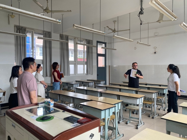 会后,相关负责老师前往第一教学楼各教室,共同商讨大赛场地布置、设备调试等相关问题。