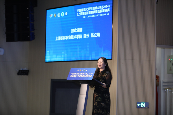 陈立婧代表承办单位致辞并表示中国国际大学生创新大赛是覆盖全国影响最大的双创赛事,是中国高校创新能力的蓄水池,也是广大学生的练兵场,上海农林职业技术学院非常荣幸能够第二年承办这项重要赛事,为我市大学生创新大赛的成功举办贡献上农力量。作为比赛承办方,学院将认真做好各项赛事筹备工作,保障赛事顺利进行,争取将本次大赛办出水平、办出特色、办出影响。