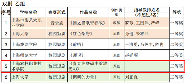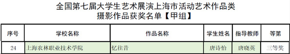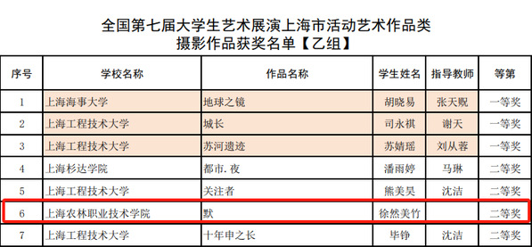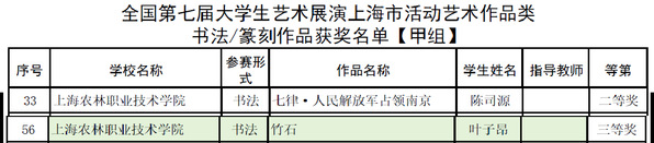 近日,全国第七届大学生艺术展演上海市活动评奖结果公布。学院报送的高校美育改革创新优秀案例、戏剧、声乐、舞蹈、书法、摄影作品,荣获二等奖3项、三等奖5项。