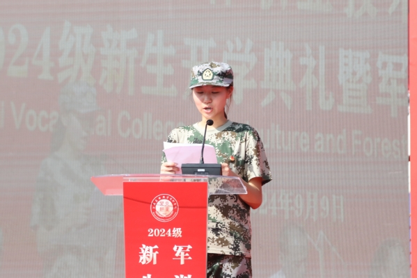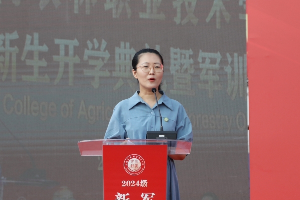 院长陈立婧代表全院师生向2024级新同学表示热烈欢迎,向承担新生军训任务的全体教官致以最崇高的敬意。她表示,学校正在朝着高质量建设全国一流农林职业院校的目标大步前进。同学们选择了职业教育,选择了上海农林职业技术学院,学校和老师们将一道努力,尽心尽力提供平台和舞台,为同学们将来的大有可为奠定坚实的基础。同时对全体新生提出三点希望:一是永葆初心,厚植家国情怀,做勇担时代重任的上农人;二是保持恒心,培养奋斗精神,做坚持知行合一的上农人;三是锤炼匠心,练就过硬本领,做矢志全面发展的上农人。接下来的军训,希望同学们以军人的标准严格要求自己,练就强健体魄,磨砺坚强意志,保持身心健康,为顺利完成大学学业迈出坚实的第一步。