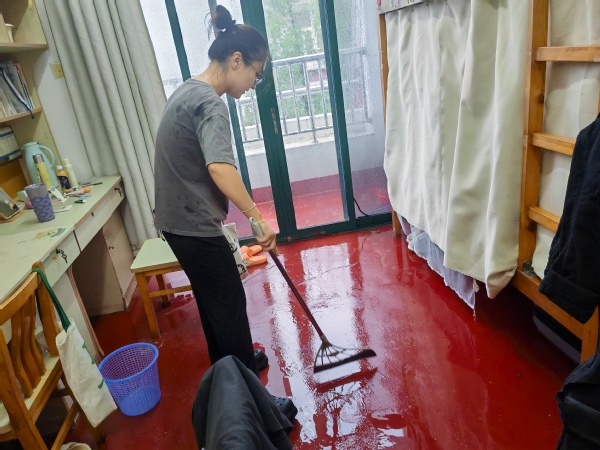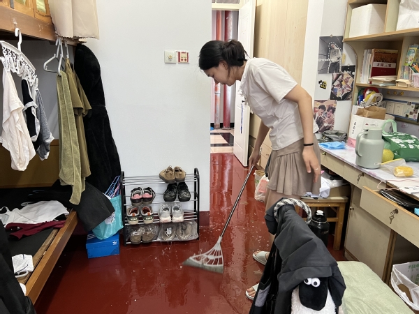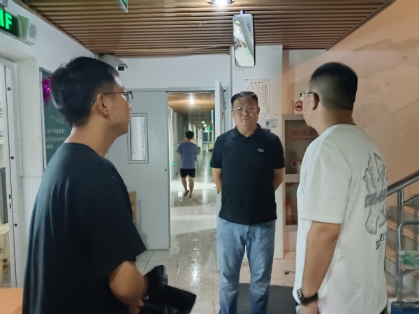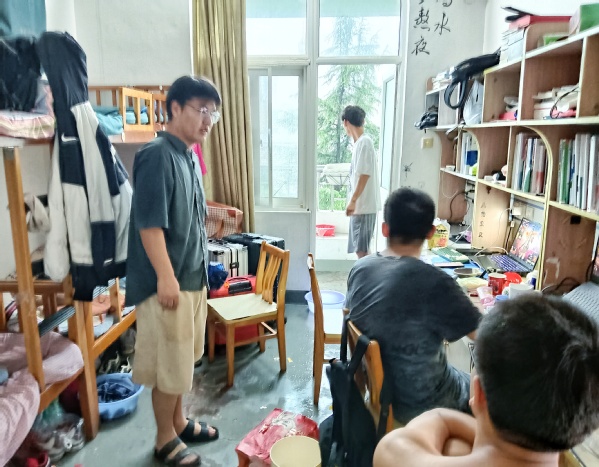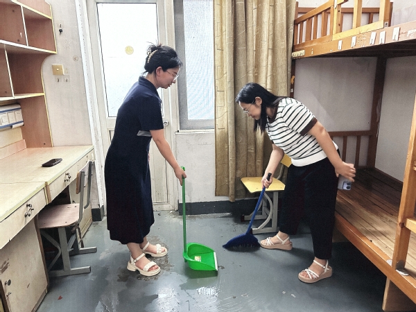 党委副书记、副院长邵阳全面巡查校园,深入学生宿舍掌握受损情况。与后勤处及时沟通解决宿舍断电、宿舍楼前积水严重等问题,抢抓时间进行修复处理,解决学生需求。