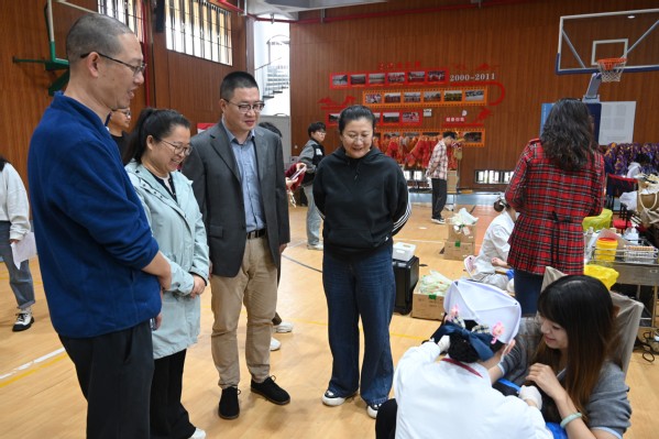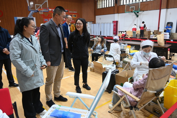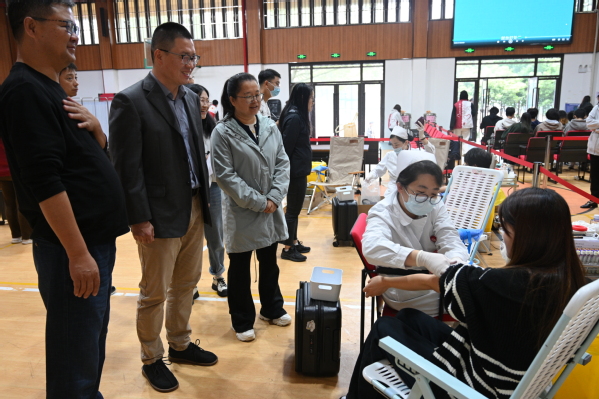 献血期间,院长陈立婧,党委副书记、副院长邵阳,工会主席高功辉等一行来到现场来亲切慰问了献血师生,对他们无私的奉献表示了高度的赞扬和衷心的感谢。同时叮嘱他们注意休息、合理补充营养。相关部门及各系老师也在现场进行各项流程的组织协调,确保献血工作有条不紊地进行。