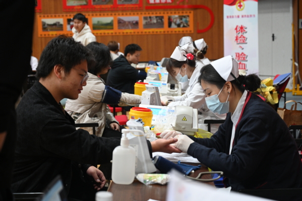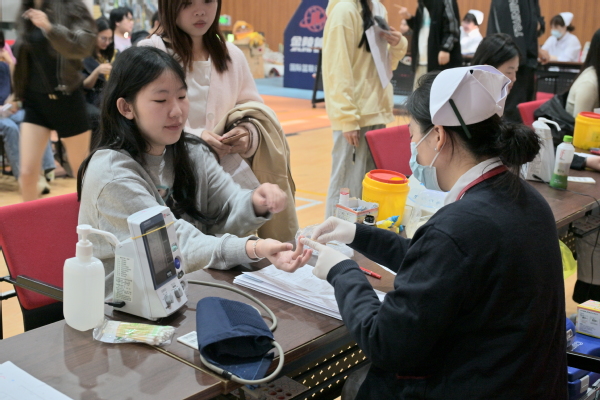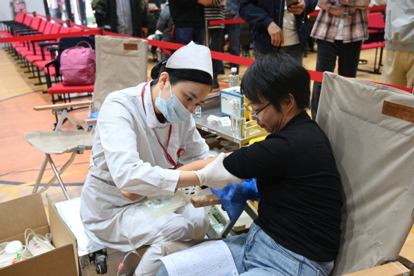 献血活动当日,现场秩序井然,献血师生精神饱满。场内设置了休息区、体检区、献血区、休息区、领证区等区域。上午8点30分,师生们在现场工作人员和志愿者的引导下,按照要求认真填写“献血登记表”,有序进行健康状况检查、测量血压、血液化验等一系列前期工作。随后,体检合格的师生们由志愿者细心带领至献血区进行献血。师生们挽起衣袖,献上热血,彰显着上农人的责任担当。