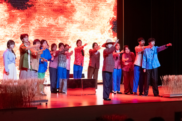 原创农业剧《上农匠心》由学院师生自编、自导、自演,历时7个月的精心筹备,于2024年4月26日首次与观众见面。该剧以上农师生建校70多年来服务“三农”,主动对接乡村振兴、重点产业领域发展和推进农业农村现代化为主线,全视角、立体化、多形式再现了上农老中青三代扎根三农沃土、谱写助农华章的奋进故事。在学院党委的大力支持及指导下,师生再次对剧本内容精心打磨、创作,将动物医学、插花花艺、种子生产与经营等专业知识融入,将该剧从校内推广到校外的舞台进行展演与实践。从编写剧本到遴选演员、组织排演及最终展示,在紧张集训中,师生们从节目编排、音乐编辑,再到服装道具准备、表演技艺等各方面都尽最大努力,力求精益求精。舞台上,跌宕起伏的故事情节,鲜活生动的人物形象,生动有趣的语言都给观众留下了极其深刻的印象。观众全程热情高涨,阵阵掌声回响在剧场。