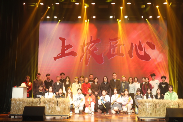 11月27日,原创农业剧《上农匠心》在松江区新浜镇文体活动中心上演。这也是该剧第二次走出校园,面向社会观众演出。党委副书记、副院长邵阳,新浜镇党委副书记卜春芳,新浜镇党委委员、武装部部长薛勇,新浜镇副镇长梁潇,松江区团区委副书记朱佳乐,新浜镇机关各部门副科及以上干部、村居“两委”班子成员、学院学工部及团委相关负责老师、新浜镇居民等200余人共赏演出。