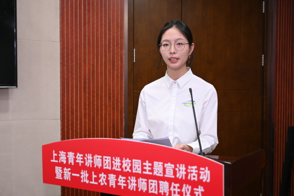 随后,上农青年讲师团2名讲师代表开展宣讲。他们将理论与实际相结合、道理与故事相统一,把党的创新理论转化为青年身边的“小故事”,融入青年生活场景,用“青言青语”让理论宣讲走“新”更走“心”。