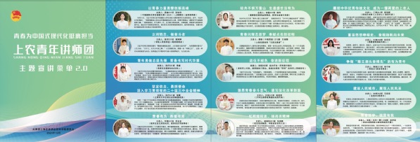 为进一步做好理论宣讲工作,院团委整合校内宣讲资源。在去年的基础上,今年的主题宣讲菜单迭代更新,面向各系、各班级接受点单。讲师团成员也进行了重新选拔、重新培养,总人数从13名增加至15名。下一步,院团委将持续把理论宣讲工作作为重点工作推进,着力打造上下联动、线上线下互动的宣讲阵地,构建共享、互通、互鉴的网络宣讲平台,进一步扩大宣讲的影响力,展现出新时代上农好青年的风采。