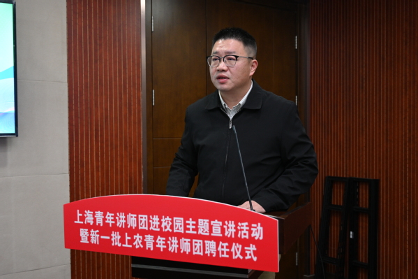 12月18日,在综合楼第三会议室,院团委组织开展上海青年讲师团进校园主题宣讲活动暨新一批上农青年讲师团聘任仪式,党委副书记、副院长邵阳出席,上海青年讲师团讲师姜超、团委、各系团总支、指导教师、上农青年讲师团全体成员、院系团学骨干代表70余人参加。