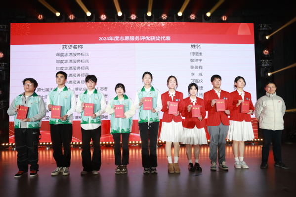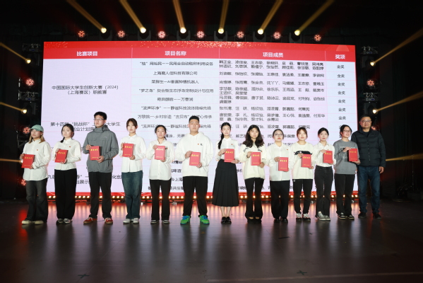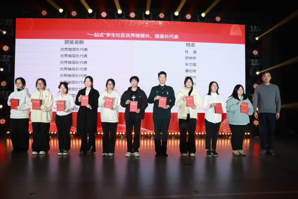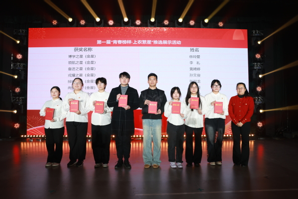 晚会现场还对荣获“青春榜样·上农繁星”金星代表、年度志愿服务标兵、第七届中国国际进口博览会优秀志愿者代表以及荣获中国国际大学生创新大赛(2024)(上海赛区)职教赛道选拔赛、第二届上海市职业院校学生创新创意大赛、第十四届“挑战杯”中国大学生创业计划竞赛、第九届“汇创青春”上海大学生文化创意作品展示活动一等奖的学生代表以及荣获学生一站式社区优秀寝室长、楼层长和辅导员能力大赛获奖教师代表进行了表彰,党委副书记、副院长、副校长邵阳,党委委员、副院长、副校长费国强、工会主席高功辉、党办院办主任费明和学工部部长高东菊为获奖学生代表颁奖。