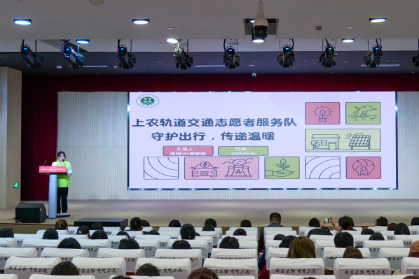 花艺231班王杨和宠物231班贺梦婷分别作为志愿者标兵和志愿服务先进集体代表进行交流分享。王杨分享了从大一加入青协以来参加志愿服务的难忘经历,310小时的志愿服务让她蜕变成更好的自己,她也从帮助他人的过程中收获成长与感动。宠物231班贺梦婷介绍了上农轨道交通志愿者服务队的发展历程,以及在组织春运等大型志愿服务活动时的经验与心得,强调团队协作和奉献精神在志愿服务中的重要性。