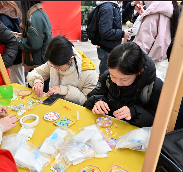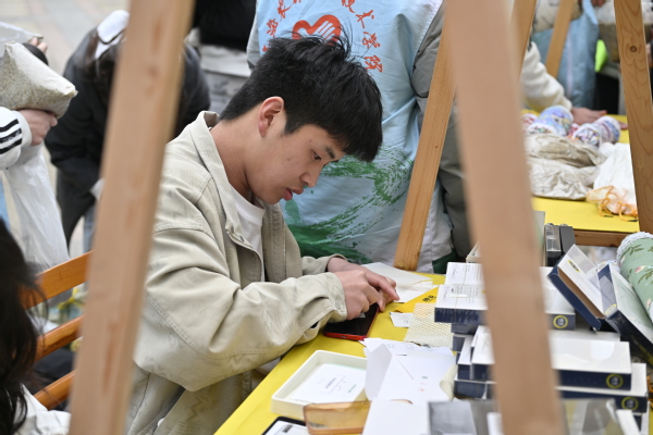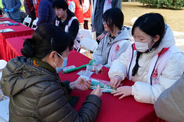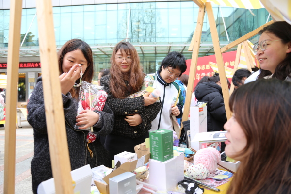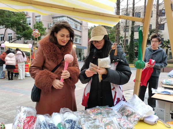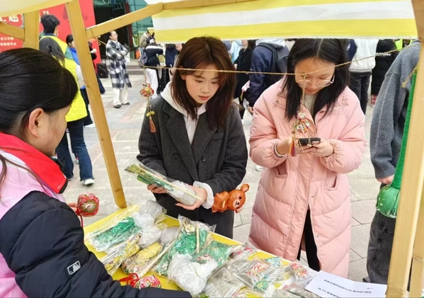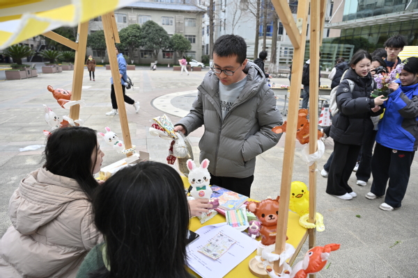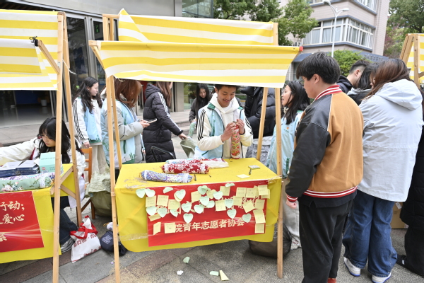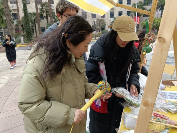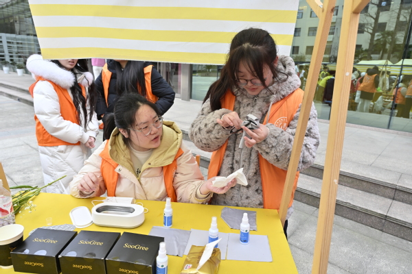 数字经济与创意系精心策划的“传承雷锋精神,共筑绿色梦想” 摊位吸引了众多师生。摊位设置塑料瓶、旧书籍等可回收物兑换香囊包,以及志愿者凭 100 小时服务时长兑换艾草锤的活动。香囊包含艾草等香料,有驱虫醒脑功效;艾草锤由天然材料制成,实用环保。现场气氛热烈,连来自法国亚眠商学院的学生们也被深深吸引,纷纷驻足体验。