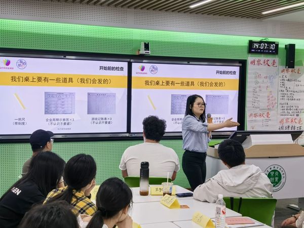 此次培训共吸引了40名充满创业热情的学生参与其中,并邀请上海市“马兰花计划”创业培训讲师陆琳老师和李豪老师围绕GYB课程内容展开教学。课程包含了理论课堂和实践课堂。课程采用小班化、沉浸式教学,通过“创业十步”开展教学,使学员循序渐进形成系统化创业思维和商业逻辑闭环,并应用模拟沙盘教学让学员亲身体验企业生命周期,感受真实商业环境,深入理解商业运作规律。