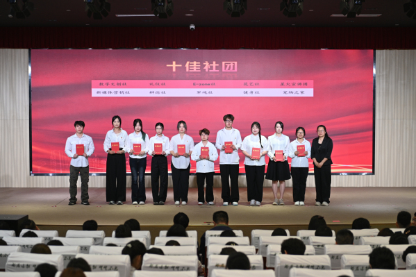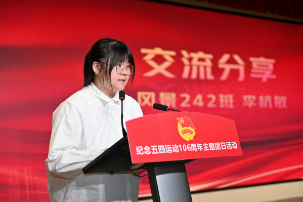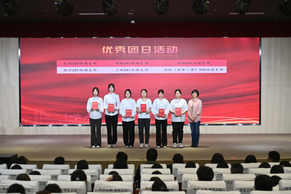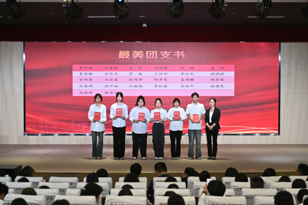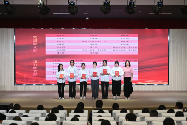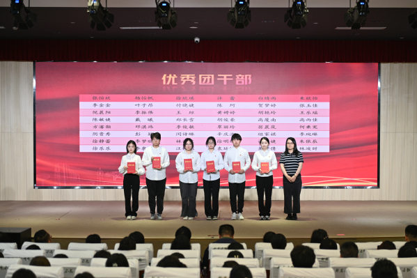 团委书记张楠宣读《共青团上海农林职业技术学院委员会关于2025年“五四”评优表彰的决定》,授予张怡欣等48人“优秀团干部”荣誉称号,授予陆馨瑜等71人“优秀团员”荣誉称号,授予吕佳琦等25人“最美团支书”荣誉称号,授予风景242团支部等20个团支部“活力团支部”荣誉称号,授予旅管231团支部等20个团支部“先进团支部”荣誉称号,授予新媒体营销社等10个社团“十佳社团”荣誉称号,授予文创232班团支部等10个团支部的团日活动“优秀团日活动”光荣称号。同时表彰了在2024年度“上海市基层团组织典型选树”中表现突出的集体和个人。学院关工委常务副主任俞锦禄、党委学工部部长高东菊和各系党总支负责人为获奖代表颁发荣誉证书。风景232班李杭敏和质检231班张怡欣作为获奖集体和个人代表进行青春报告,以自身经历激励同学们勇于拼搏、积极进取,让五四精神在新时代绽放新光芒。