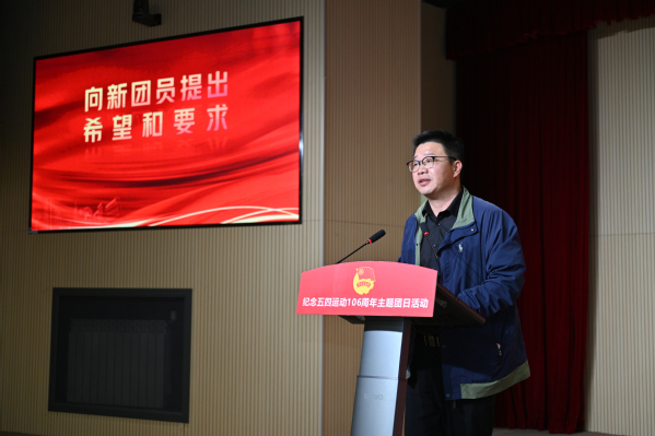 邵阳向受表彰的先进集体和个人表示祝贺,向全院青年师生致以诚挚问候,并向63名新团员提出希望和要求:一是希望同学们胸怀远大理想,做志存高远的新时代青年;二是希望同学们练就过硬本领,做实干担当的新时代青年;三是希望同学们锤炼精神品格,做奋发有为的新时代青年。