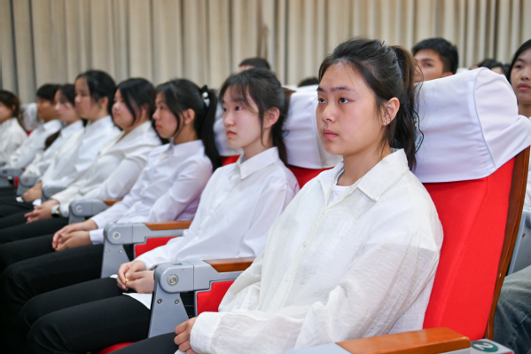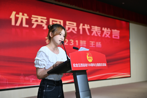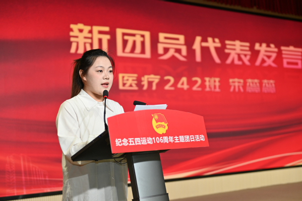 医疗242班宋蕊蕊作为新团员代表发言。她表示将以入团为新起点,努力学习、锤炼品格,积极投身于社会服务、科技创新等国家发展所需领域中,将个人成长与国家发展紧密相连,以实际行动践行“请党放心,强国有我”的青春誓言。花艺231班王杨作为优秀团员代表发言。她结合自身经历,向全体新团员讲述了自己在团组织的引领下逐渐成长和进步的生动故事。她号召新团员们以信仰为底色、行动为阶梯,让青春在服务与实践中绽放光芒。