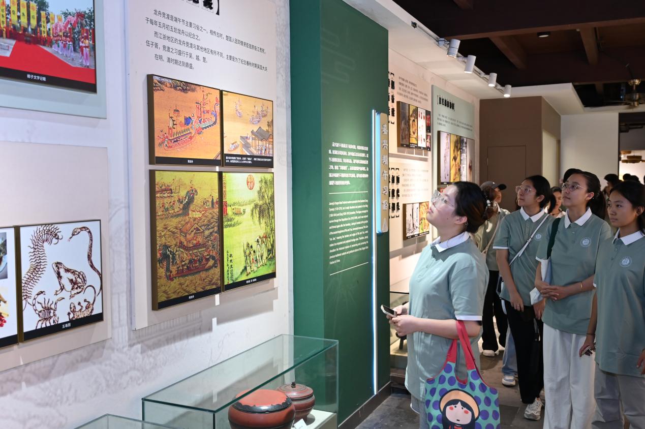 在月河历史街区,学生骨干们沿着青石板路漫步,探访江西会馆、大昌当铺等历史建筑,走进五芳斋等老字号店铺,近距离感受江南水乡“小桥、流水、人家”的独特风貌。街区内保存完好的明清民居、古朴的商铺格局,不仅展现了嘉兴深厚的历史文化底蕴,更让骨干们了解到抗战时期嘉兴人民在艰难环境中坚守家园、传承文化的生活风貌。位于街区内的粽子博物馆,以“一粒糯米的文化之旅”为主题,展示了嘉兴粽子从传统制作工艺到现代产业发展的历程,以及粽子背后蕴含的端午民俗、家国情怀。学生骨干们通过品尝嘉兴粽子,观看当地居民包粽子的手艺,进一步了解了传统文化,增强了文化自信与传承意识。