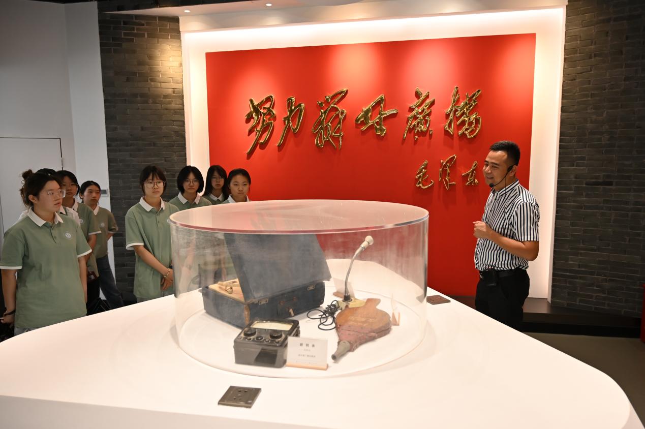 在秀洲区新塍镇康和桥村,学生骨干们走进乡村广播记忆馆。馆内陈列的数十台老式收音机、广播喇叭、录音设备,记录了从“土广播”到“有线广播”再到“数字广播”的发展变迁,生动反映了不同时期乡村的文化生活与时代风貌。在村工作人员的带领下,学生骨干们还实地参观了康和桥村的村容村貌、文化广场、便民服务中心,了解该村在乡村振兴战略下的发展成果。“从老式广播到智慧乡村建设,康和桥村的变化让我们看到了乡村发展的活力,也感受到了党和国家对乡村振兴的重视。”学生骨干们在交流中表示,将把乡村发展的鲜活案例带回校园,引导更多同学关注乡村、服务乡村。