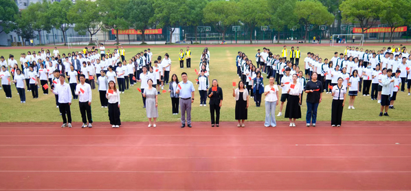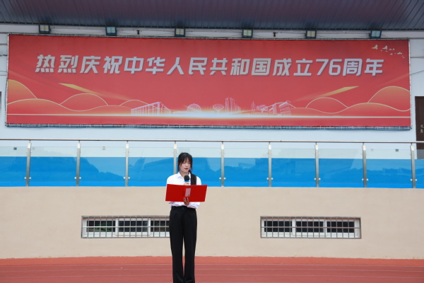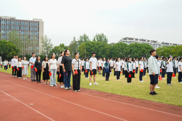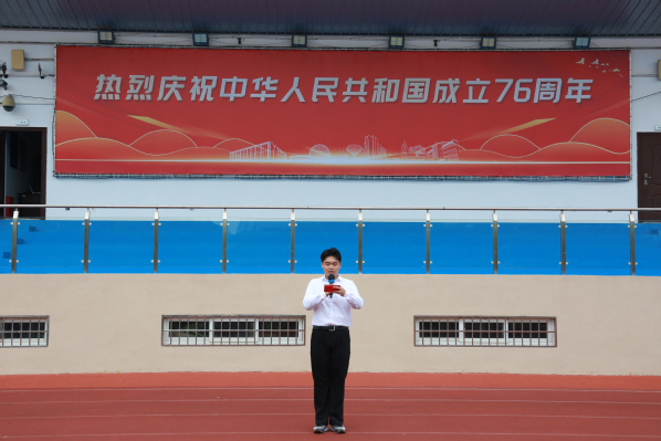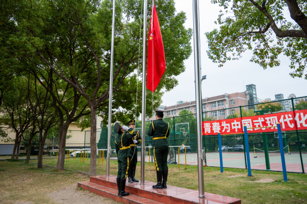 在雄壮激昂的国歌声中,鲜艳的五星红旗冉冉升起,迎风飘扬。师生们目光坚定,肃立注目,用庄重的姿态表达对祖国母亲的无限崇敬与深深祝福。