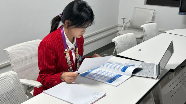 辅助管理岗位志愿者王杨同学,作为“三年级小叶子”从储备岗到接待岗再到辅助管理岗,今年以更为成熟的经验与热忱投入新角色。从前期流程梳理、现场人员统筹调度,到物资精准补给与突发状况即时响应,她在服务中持续收获成长。她表示:“三载进博路,变的是岗位,更是视角。曾带队守在第一线,制定动线、迎接要客,每个细节都亲力亲为;如今转战幕后,用经验培训新人、优化流程、协调资源,成为团队的坚实后盾。从“带领冲锋”到“支撑全局”,这份转变让我深刻体会到传承的力量。只要进博需要,我愿继续在这片开放的热土上贡献光热。