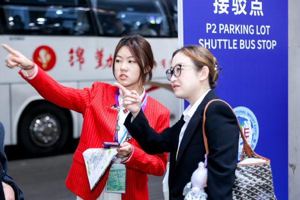0米层接驳车岗位志愿者董佳颖表示:“参与进博会的志愿服务对我而言是一场青春与责任的邂逅。作为接驳车岗位的小组长,我就像一座桥梁,一头连接着老师们,一头系着同学们,负责传达与落实各类消息。每日清晨我便和同学们一同奔赴岗位,指引路线,维护现场秩序。这次工作还和上海建设管理职业技术学院的伙伴搭班,多了一份跨校对接的情谊,也让志愿服务更添色彩。”