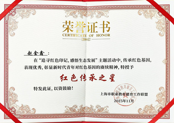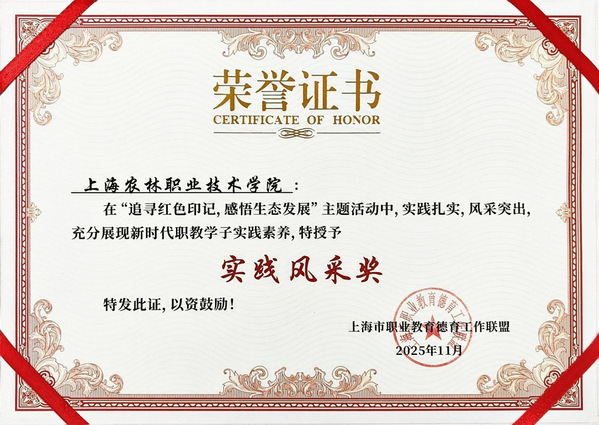 为进一步强化爱国主义教育与生态文明理念,引导广大职教学子在实践中感悟红色精神、深植生态意识,在行走中感悟历史、在体验中启迪思想,学工部、团委积极组织师生参与上海市职业教育德育工作联盟组织的“追寻红色印记,感悟生态发展”主题团队活动。本次活动吸引17所职业院校的共计8000余名学生踊跃参与,经综合评审,遴选10所院校组建参赛队伍,晋级线下实践体验环节。学院在此次活动中获得“实践风采奖”,1名同学获得“红色传承之星”奖项。